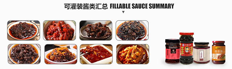 配備臥式攪拌料斗,大限度的保障在灌裝過程中物料均勻、無油醬分離,確保每一瓶的灌裝精確度,該設(shè)備在設(shè)計上大大縮短了下料斗到灌裝頭的灌裝距離,克服了含油量大的油料(如:含芝麻粒的辣椒油)在灌裝過程出現(xiàn)的有些瓶油多,有些瓶醬多的灌裝誤差大的缺點。
